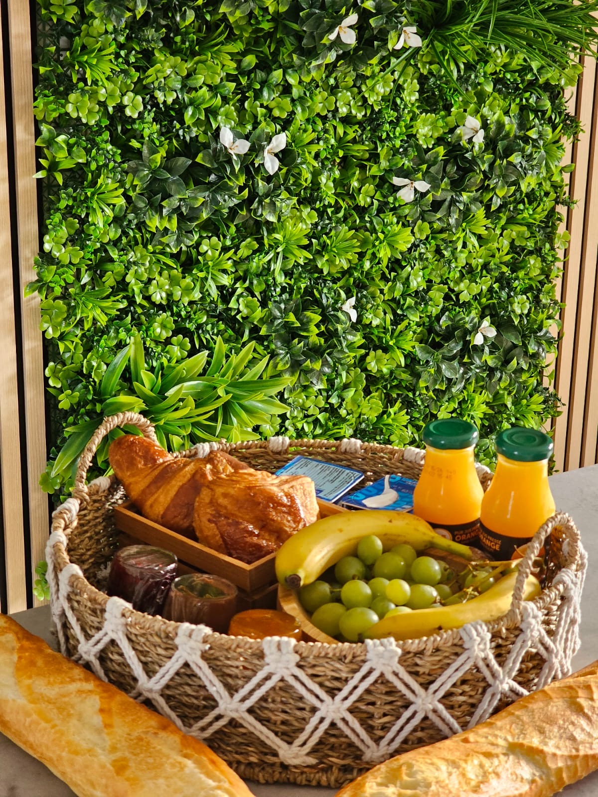 petit déjeuner livré devant votre porte à partir de 7h du matin.